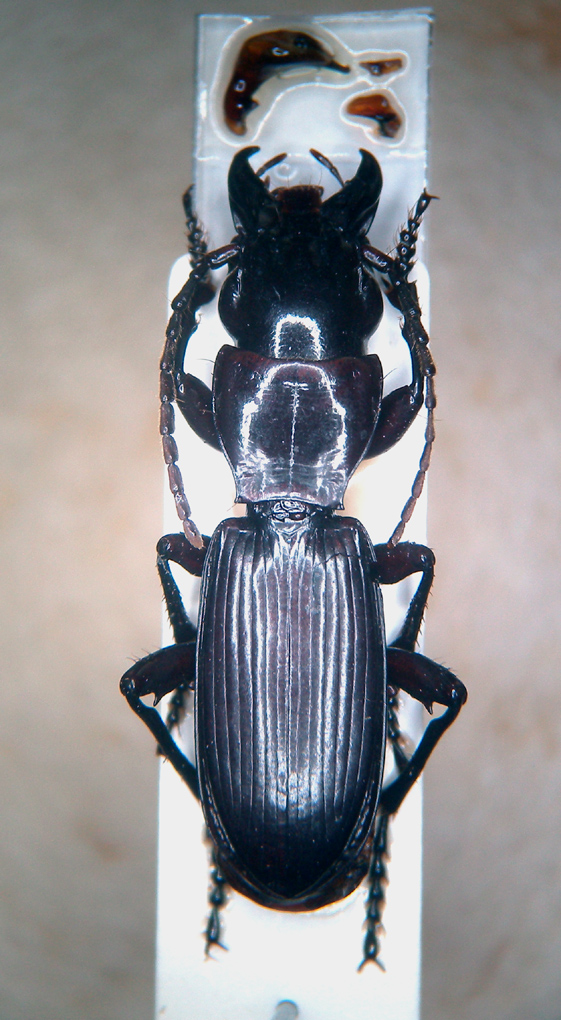 Un sistema pratico è quello di posizionare i genitali, una volta estratti, su di un supporto(carta o plastica) che sporga rispetto all'insetto; in questa maniera ogni volta che devi controllare i caratteri dei genitali non devi staccare nulla.Davanti o lateralmente a tuo piacimento.Vedi come mi comporto io (ma in generale tutti i carabari).
