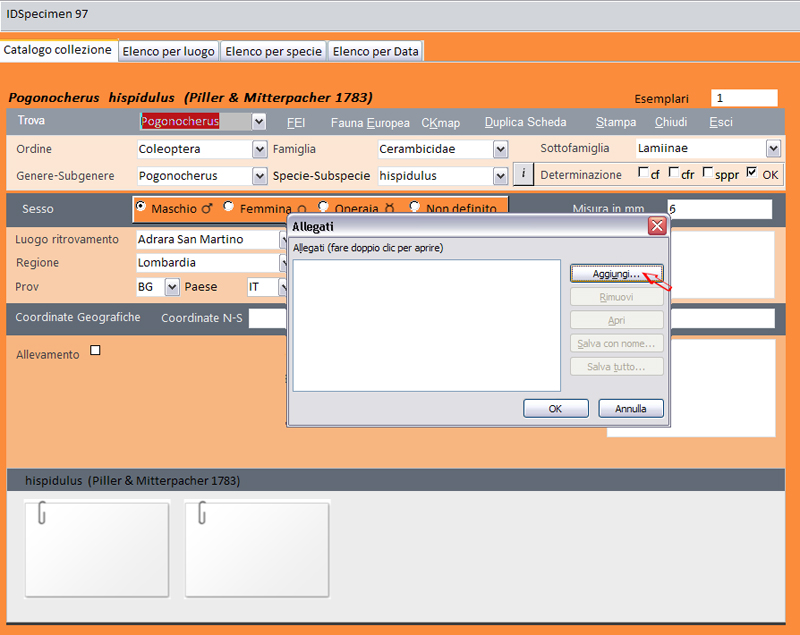 e sicuramente amplierei i campi di inserimento dati di raccolta per gli esemplari presi non solo in Italia ma in qualunque parte del mondo.