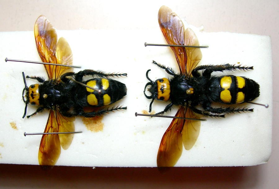 Grazie per i consigli. Ho guardato l'immagine delle due vespe e credo che le vespe che menzionavo sono Vespula. Ho frugato un po' nella sezione Imenoptera per vedere altri esempi di imbalsamazione e credo di aver capito coma vanno posizionati. Un'altra domanda: gli Scoliidae pungono? Perchè so che depongono le uova dentro alle larve di Coleoptera Dynastidae con il pungiglione. :?