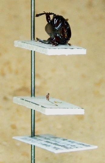 Infine, anche se esteticamente non è il massimo, il metodo migliore per avere la completa visibilità globale nonché una buona superficie aderente al cartellino, consiste nell'icollare la bestiola su di un fianco, con le zampe lato cartellino ben distese parallele alla superficie di quest'ultimo. :gh: