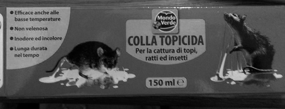 questa invece è la colla per topi che ho comprato ieri.. ovviamente (maledetti) non c'è scritto il tipo di solvente da utilizzare quindi stiamo facendo delle prove con acqua, alcool e acetato di etile.. speriamo bene..