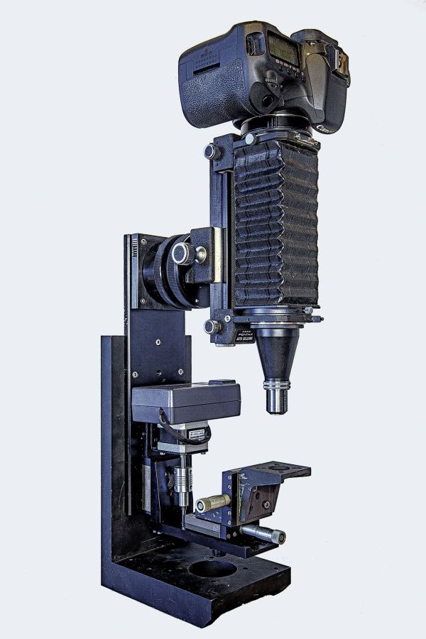 Forse solo per la pigrizia di farmi un banco decente. Ti confesso che avevo allestito un banco con la macchina che lavorava in orizzontale. Il difetto maggiore era l'illuminazione, perchè non sono mai riuscito a trovare un sistema soddisfacente per montare i led a corona intorno al soggetto. La cosa, poi, che mi faceva sclerare era il tempo che perdevo per centrare il soggetto quando volevo fotografare con obiettivi da microscopia. A un certo punto sono impazzito e ho smontato tutto. Ora fotografo solo in verticale, con la reflex su stativo: con la cremagliera dello stativo faccio i movimenti grossolani, poi centro rapidamente il soggetto muovendo il piano illuminato, e infine con la slitta micrometrica avanzo per lo stacking.