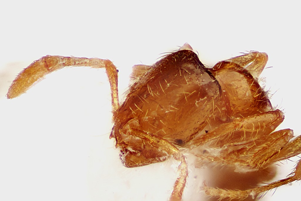 Continuando con le prove. Stavolta sono riuscito ad evitare le bande viola, ma ci sono ancora problemi di illuminazione. Su una superficie così lucida e liscia, i riflessi sono piuttosto fastidiosi. La definizione lascia ancora molto a desiderare. Solito obiettivo Nikon 10x E-Plan LWD con soffietto alla distanza nominale (160 mm) Formica di 1,4 mm uscita dal Poliporo di San Vittorino, mi pare sia pure microftalma o quasi.