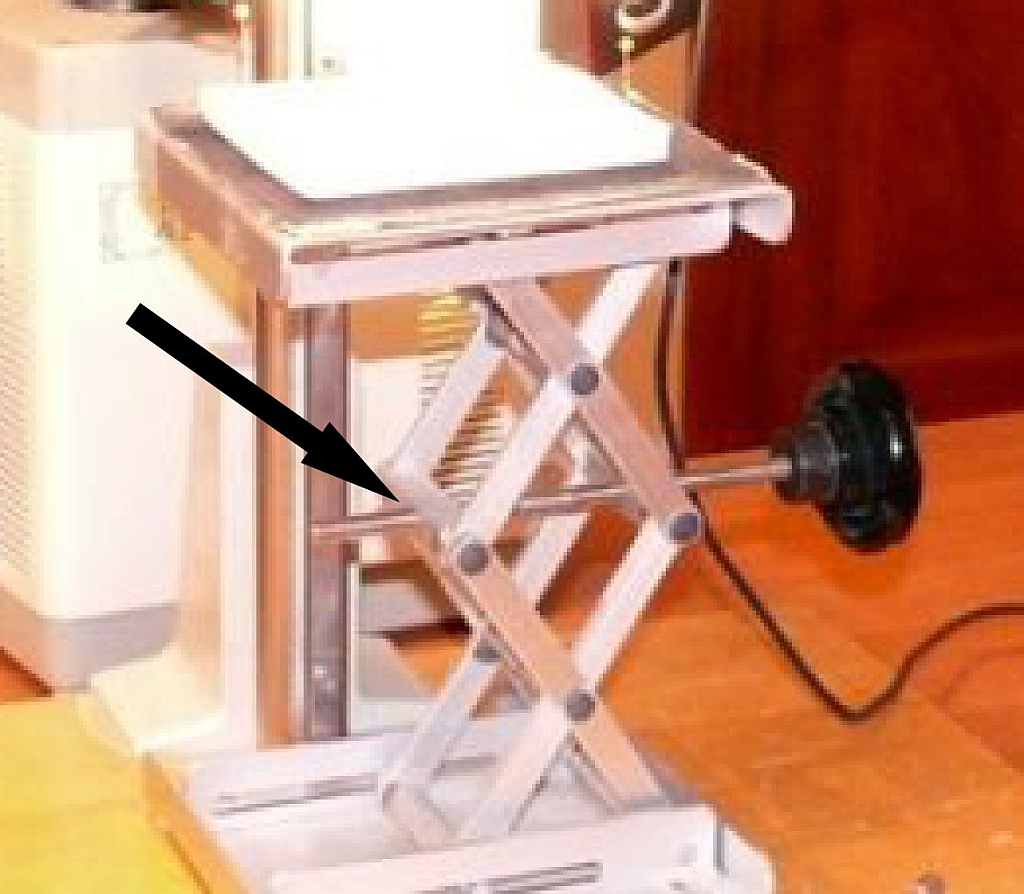 La vite può agire tranquillamente solo su di un "lato" del pantografo (quello dalla parte della manopola).