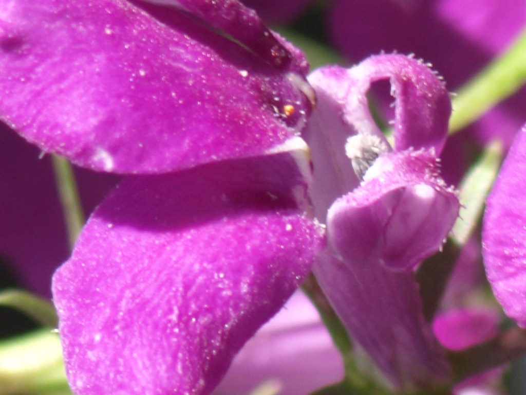 Sono entrambe fatte con fuoco 22 e 100 ISO, a 1/200 con la D200 e a 1/160 con la E-410 (tempi di sincro-flash), con il Micro Nikkor 55/2.8. Con l'Olympus è più difficile da usare a mano libera, perchè bisogna chiudere manualmente il diaframma e poi scattare (e col diaframma a 22 e poca luce non si vede più niente nel mirino), mentre con la Nikon l'obiettivo funziona normalmente, quindi il diaframma si chiude quando si scatta. L'obiettivo era alla minima distanza di messa a fuoco, corrispondente ad 1:1 sul sensore.