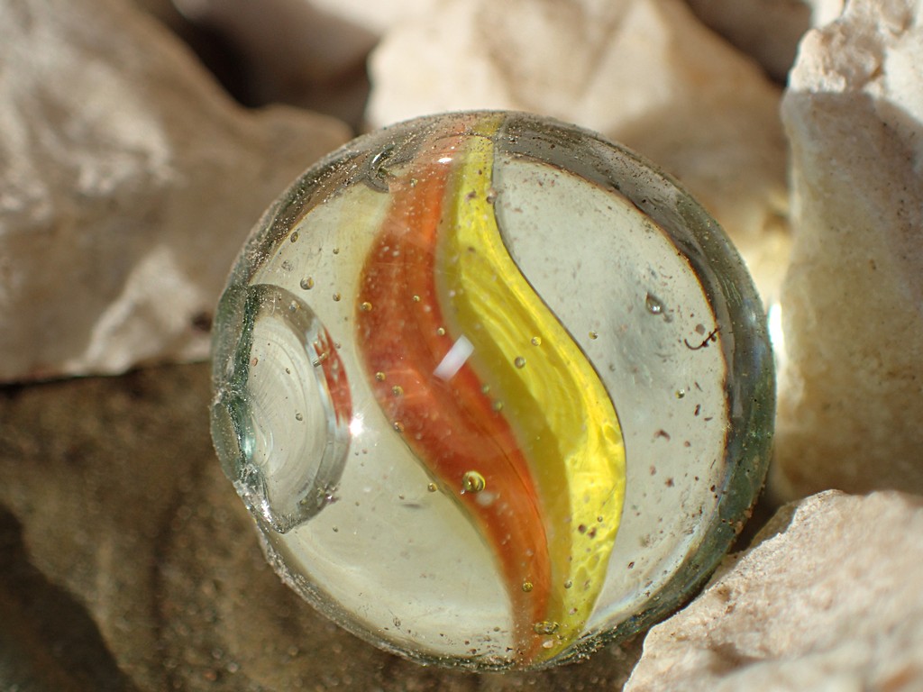 Una vecchia pallina di vetro, diametro sui 12 mm