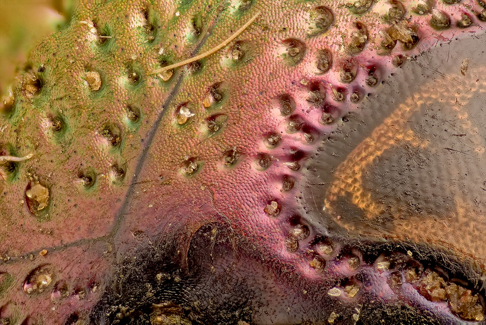 Riporto la versione ufficiale uso moglie: “Babbo Natale mi ha fatto trovare sotto l’albero un Mitutoyo M Plan APO 20x/0.42”  e giustamente come tutti i bambini quasi settantenni non ho resistito a provarlo subito. Ho preso una cetonia di circa 30 anni e così come si trovava (sembrava pulita) gli ho sparato 190 scatti intervallati di 2 micron …. ce ne sarebbero voluti di più per finire l’angolino in alto a sinistra ma le pile del flash mi hanno tradito. La zona è quella dell’occhio sinistro e a 20X il campo ripreso con un semsore APS-C è di 1.11 x 0.73 mm. I risultati mi sembrano soddisfacenti anche in considerazione che per l'illuminazione non ho fatto nessuna regolazione di fino. Riporto un crop al 100% e il fotogramma a campo pieno Un salutone e buon fine Natale  andrea