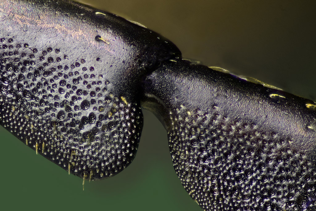 Ho deciso di fare un'ulteriore prova a 10x col Nikon Plan CFi 10x + il Nikkor 200/4 su un particolare di antenna di Buprestide e guarda che cosa ne è venuto fuori: