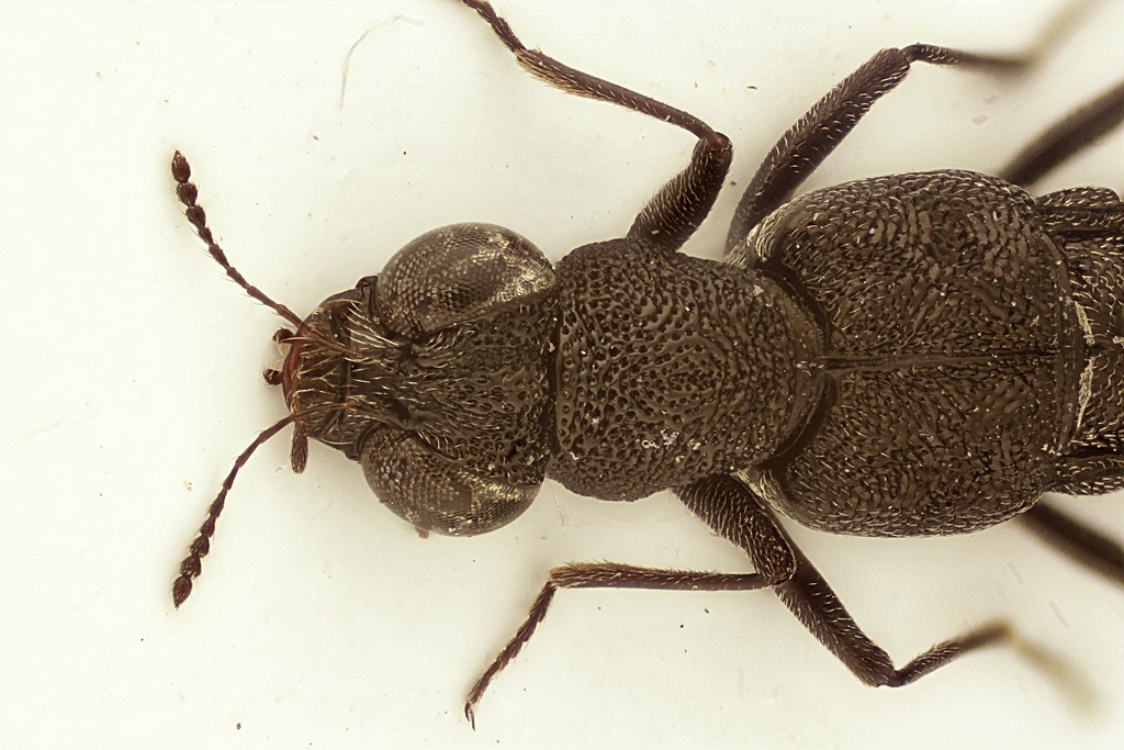 Ho appena fatto una foto di prova con soffietto a 240 mm e ingrandimento a 4,8x ad un piccolo Staphylinidae. Il primo risultato non è entusiasmante, ma almeno mi pare che non si vedano bande di aberrazione cromatica, che in genere su fondo bianco sono piuttosto evidenti.