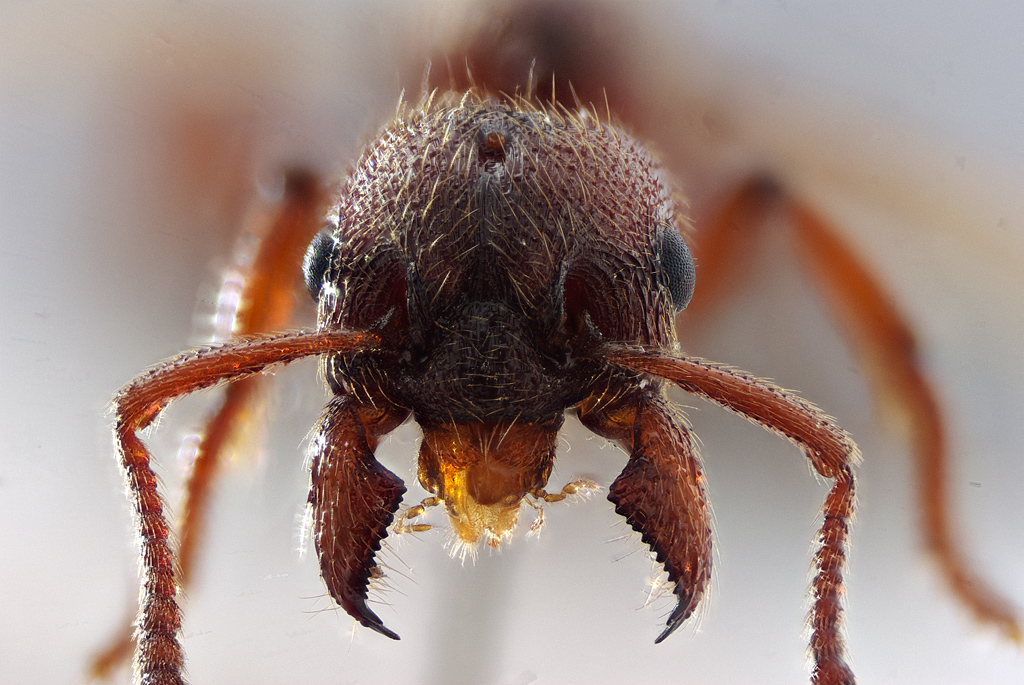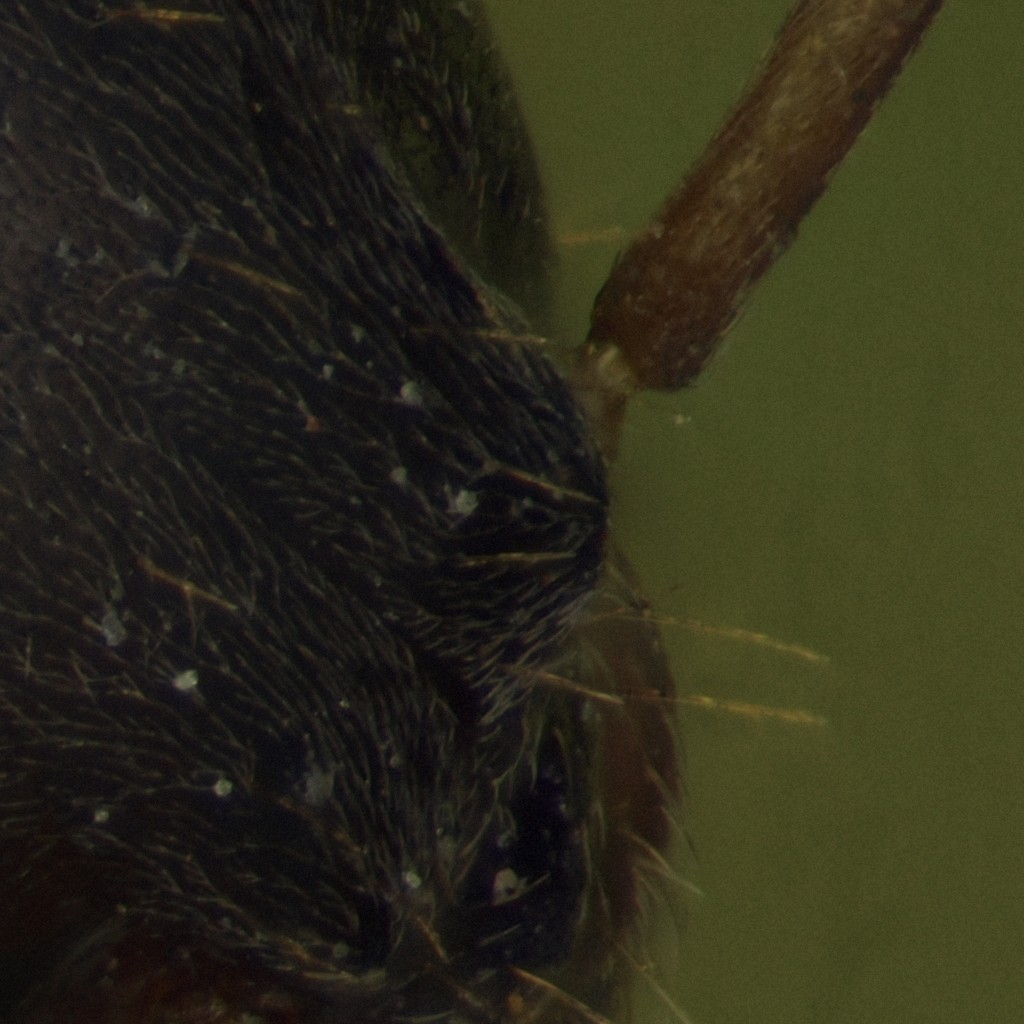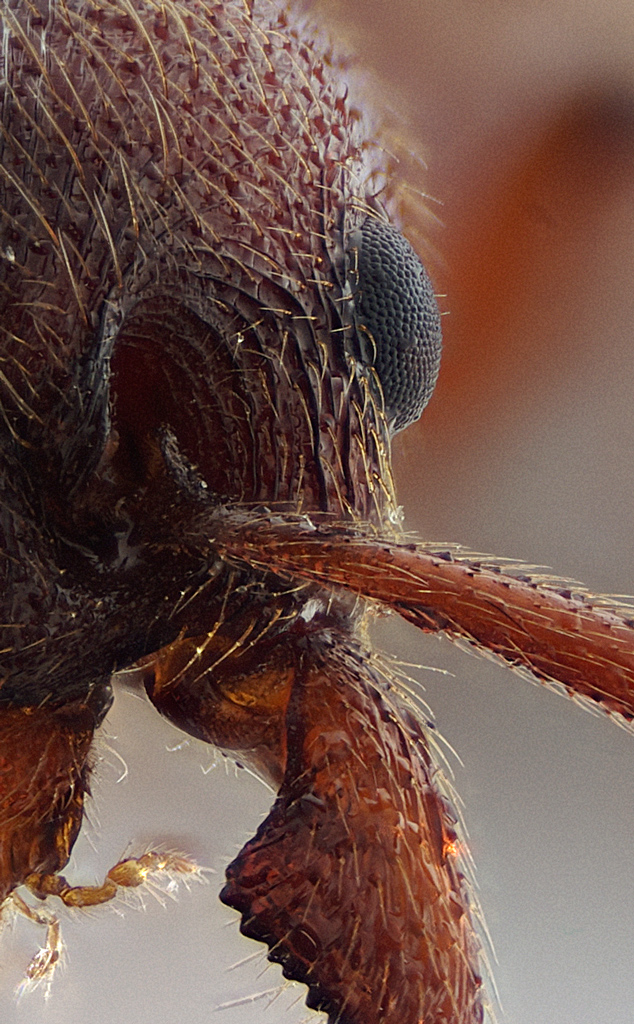 Giusto per scupolo, ho rifatto la stessa foto alla testa di formica usando la Olympus E-410, per vedere se si notavano differenze dovute al sensore.