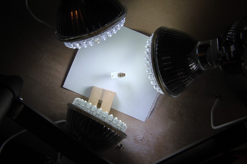 Daniele Sechi ha scritto: Grazie Maurizio, contavo su un tuo consiglio... ecco i dati della foto: tempi 1/50 diaframma 18 esposizione +2/3 ISO 100. E questa è la distanza dei faretti IMG_2497.jpg Forse posso avvicinare un po' di più i faretti, ma 25 scatti col fuoco manuale non riesco certo a farli  Dunque, avvicina i faretti il più possibile, con l'asse dei fasci luminosi il più parallelo possibile al piano dell'insetto, apri i diaframmi (allungando i tempi, e quindi riducendo il micro-mosso) e scaricati Helicon Remote che funziona benissimo con Canon (molto meno bene con Nikon  ). Dopo aver studiato un pò il software, vedrai che riesci, sfruttando il motore dell'autofocus, a fare anche 100 scatti in sequenza su un Cryptocephalus (fidati, l'ho fatto io!!), quindi 25 scatti saranno una bazzecola.