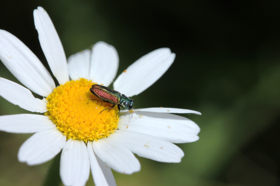 oggi ho fatto diverse prove sul campo ed il risultato non è che mi abbia soddisfatto granchè. la giornata era molto soleggiata e questo pensavo fosse una cosa positiva però poi ho notato che la luce troppo intensa mi ha creato non poche difficoltà. In generale iniziavo a scattare con tempi intorno a 1/125, f 8, iso 100 e poi a seconda dei risultati provavo diverse combinazioni, a volte con il flash. Quello che vorrei ottenere, ma che ancora non raggiungo è una buona nitidezza del soggetto con dettagli tipo la sculturra delle elitre e del pronoto visibili, con l'effetto "sfondo sfuocato"; nella maggior parte dei casi però mi sembra sempre di avere un velo trasparente davanti l'obiettivo. ecco qualche esempio le successive sono due foto identiche però la seconda è stata leggermente ritagliata e lavorata con la funzione "correzione automatica" di "Microsoft picture manager" PS: pregherei chi na ha facoltà di modificare il titolo in "prove Canon 550 e Canon Macro 100 mm"