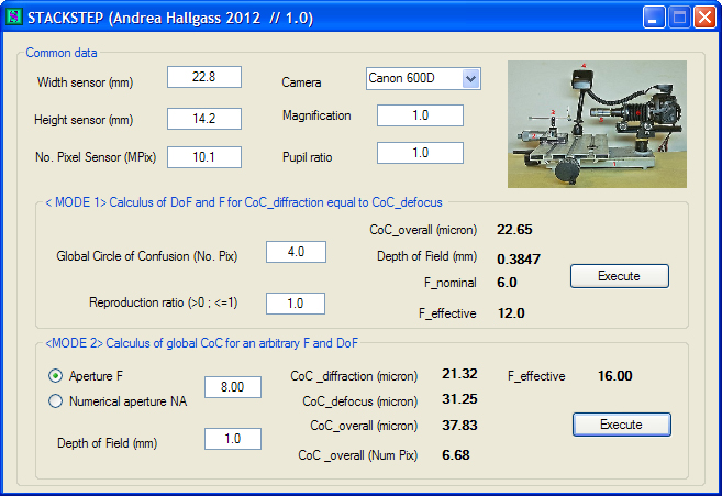 La coppia ottimale di diaframma/profondità di campo da utilizzare per lo stack; per il passo d’incremento si può utilizzare il valore della profondità di campo.