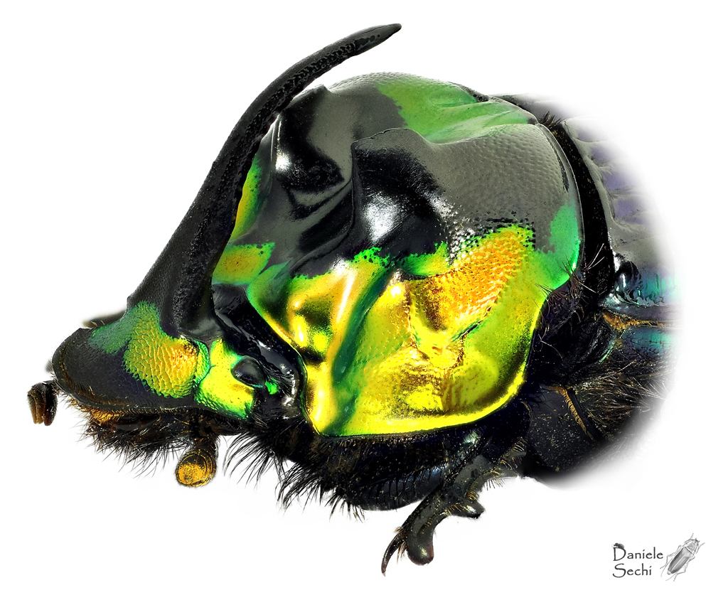 Dopo lo stacking apro il risultato con Photoshop, do un'altra aggiustatina ai livelli poi scontorno e inserisco il fondo grigio. Durata media 1 ora per ogni foto, se non ci sono problemi nello scontorno. Per gli insetti pelosi, come la Pleocoma, ho impiegato circa 5 ore solo per scontornare ogni singolo pelo.
