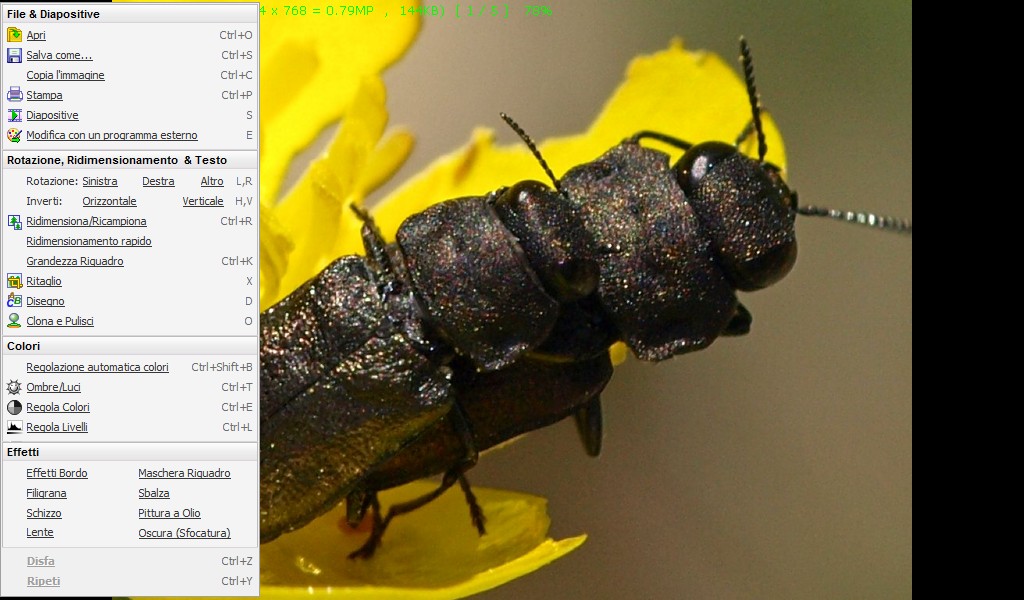 Come dice il nome, nasce come visualizzatore di immagini, funzione che svolge egregiamente. Presenta però anche un buon numero di funzioni di fotoritocco, tra cui alcune delle più utili per i nostri scopi (controllo dei colori, contrasto, nitidezza, livello di soglia, ridimensionamento, ritaglio, ecc.). Purtroppo non accetta plugin, quindi non si possono aggiungere funzioni, come il bilanciamento del bianco. Non permette di selezionare parti non rettangolari dell'immagine, di incollare parti di altre immagini, ecc.