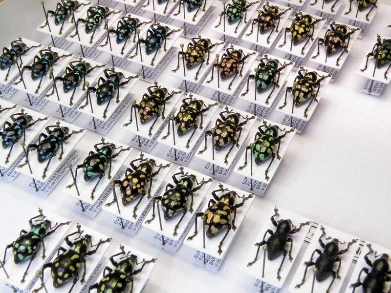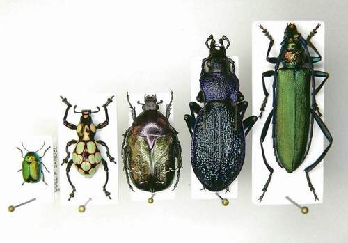 Dimensioni degli insetti utilizzati per la prova-Min. Cryptocephalus hypochoeridis mm.5.5-Pachyrrhyncus gemmatus mm.13-Cetonia aurata aurata mm.18-Megodontus croaticus carniolicus mm.30-Max. Aromia moschata mm.32