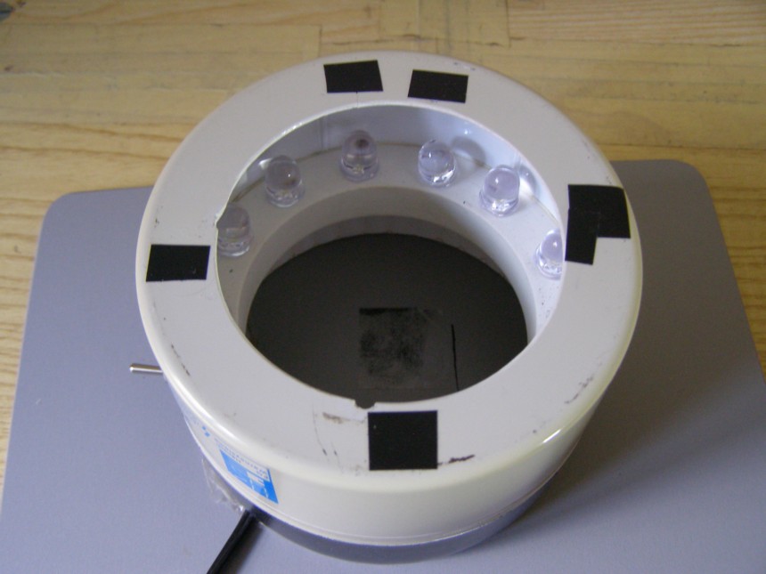 5)A questo punto mi sono costruito l'ennesimo marchingegno di cui accennavate (la campana internamente illuminata) la base Foto 7,