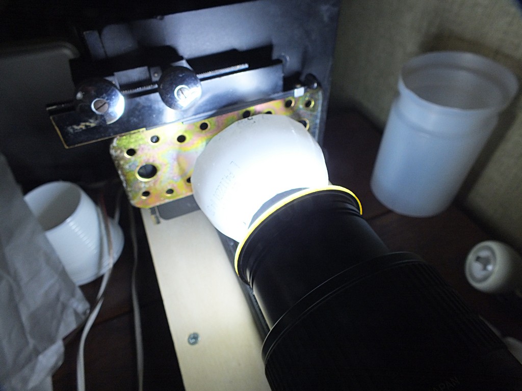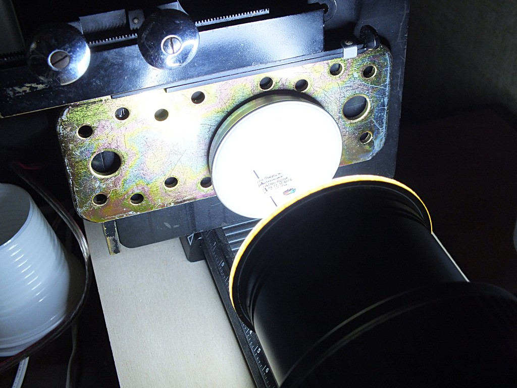 Per confronto, metto la foto del mio altro sistema, su cui attualmente ho montato un illuminatore fotografico a led acquistato un paio di anni fa, che volevo usare sul campo, ma che avevo messo da parte dopo averlo provato, in quanto bisognava usare tempi troppo lunghi per le foto a mano libera.