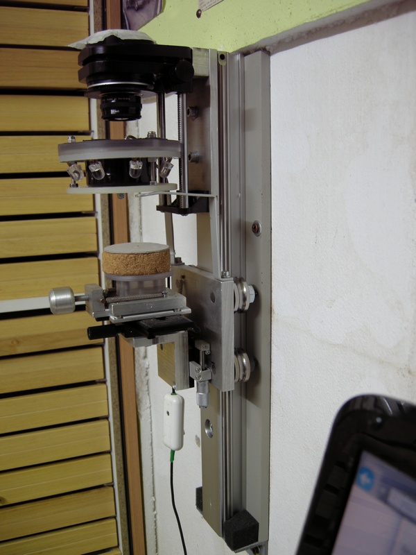 Il sistema dei magneti funziona molto bene (bisogna solo posizionarli bene, in modo che non tirino il tappo di metallo da una parte) e regge un peso notevole. Dovendolo usare con insetti molto grandi su cartellino, che potrebbero ruotare sullo spillo, basta usare l'accorgimento di mettere l'insetto rivolto in basso e girare il corpo macchina per riprese in verticale (attenzione quindi a lasciare tra corpo macchina e base del sistema abbastanza spazio per consentire la rotazione del primo (oppure fare in modo che il corpo macchina sia oltre il bordo della base).