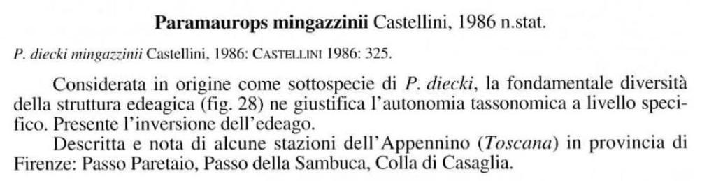 Paramaurops mingazzinii Castellini, 1986 Dettagli della specie