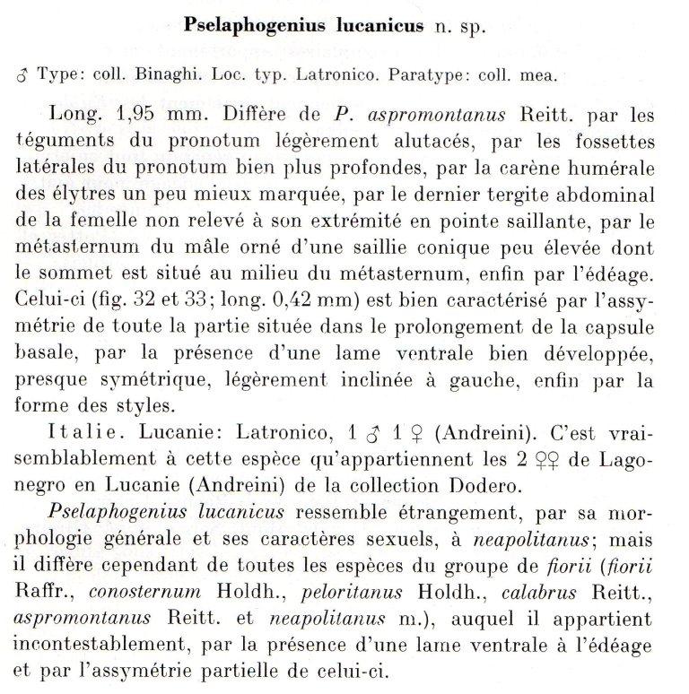 Pselaphogenius lucanicus Besuchet, 1964 - descrizione originale