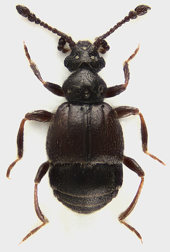 Ciao Loris. Per ora mi sto limitando a preparare qualche esemplare al giorno così come escono dal barattolo, per cui non so esattamente cosa ho preso e in che numero, ma presto dovrò decidermi a tirare fuori tutto e dividere il contenuto in varie provette, secondo il gruppo sistematico, per capirci qualcosa. Soprattutto per gli "Stafilinidi veri", che sono in numero spropositato. In mezzo ci sono comunque anche diversi Pselaphinae, ancora non so di quante specie (ad occhio, senza metterli al binoculare o fotografarli, distinguo solo che hanno diverse dimensioni e diverso colore). Questa sarà una settimana in cui avrò pochissimo tempo per l'entomologia, ma appena possibile lo faccio, così ti saprò dire se ci sono anche dei maschi. A proposito, questo esemplare è veramente così scuro, praticamente nero, e dovrebbero essercene altri.