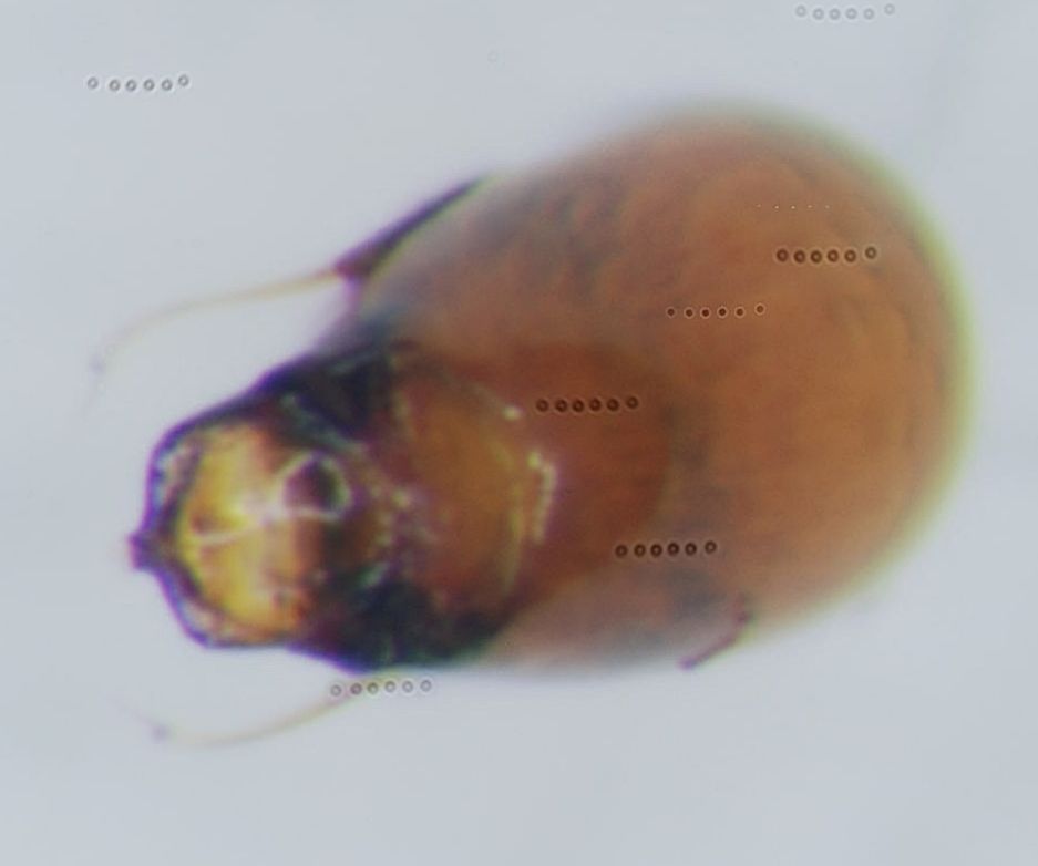 Non so se perché l'edeago era già inglobato nella colla che non si è sciolta bene al momento della nuova preparazione o, per quale altro motivo, fatto sta che all'interno dell'edeago si è formata una "bellissima" bolla d'aria :devil: :twisted: :devil: che rende la lettura dallo stesso assai complicata.