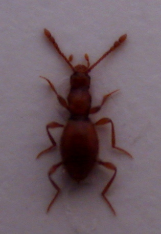 Il genere è Scydmaenus. Probabilmente si tratta di S. rufus, ma potrebbe essere anche Scydmaenus cornutus. Se fosse quest'ultimo è facile da identificare sui maschi, che hanno delle "corna" sul capo. S. rufus invece non ha caratteri sessuali secondari. Ciao, Marco |