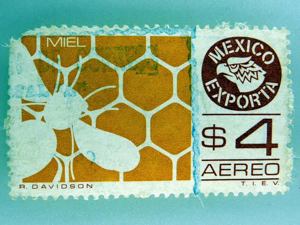Messico: francobollo con ape stilizzata dedicato all' esportazione del miele.