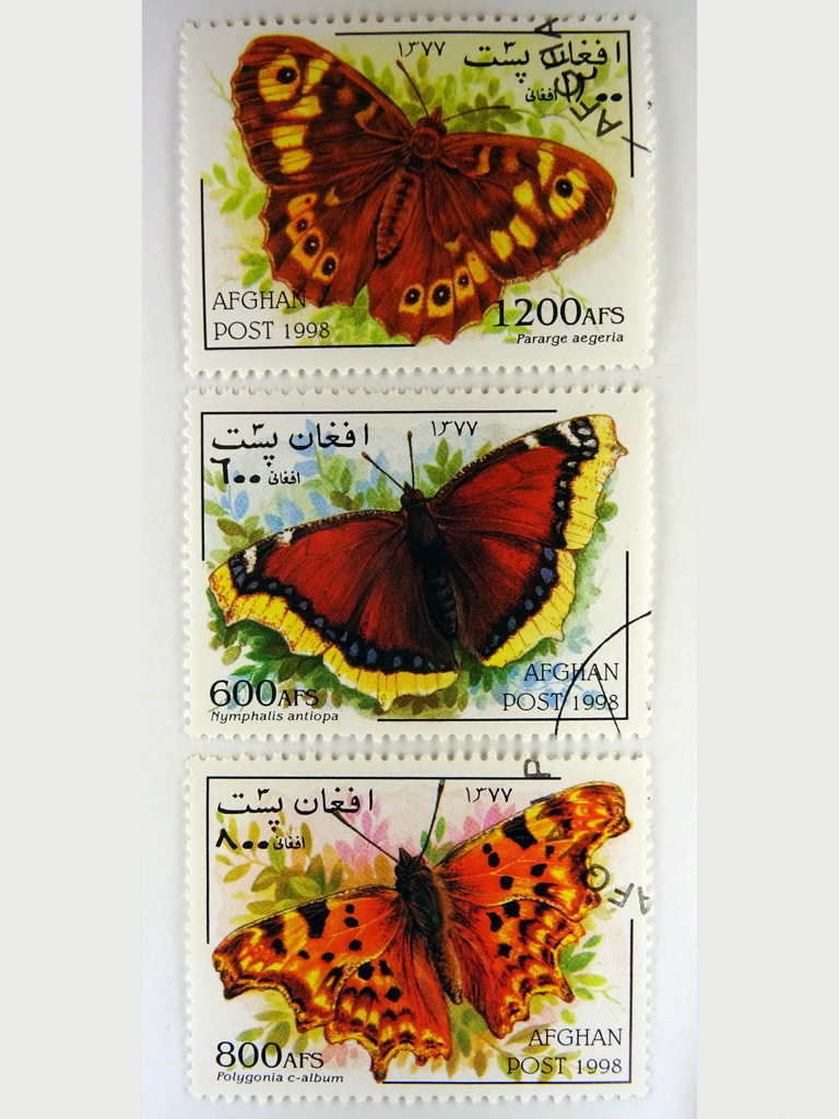 Afghanistan: Pararge aegeria, Nymphalis antiopa, Polygonia c-album