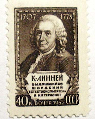 Comincio con il nostro papà, Carolus Linnaeus, in un francobollo della Russia del 1957
