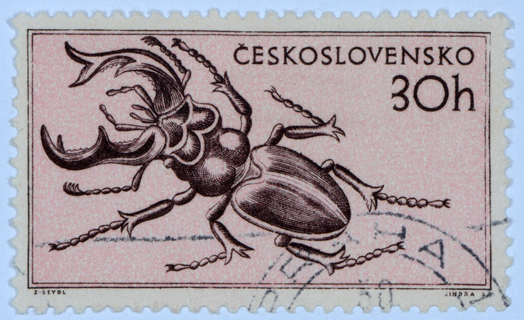 Due francobolli cecoslovacchi con cervo volante e macaone. sono un po' vecchiotti, non c'è data di emissione ma l'annullo è del 1958.