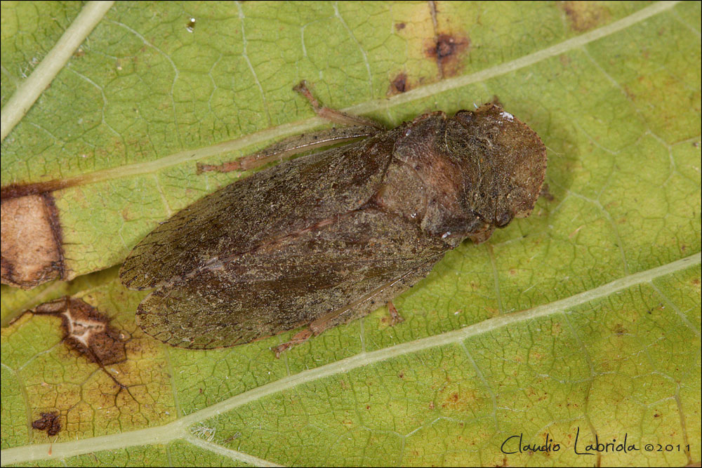 Si tratta di un adulto di Ledra aurita (Linnaeus, 1758) venuto alla lampada durante un monitoraggio di lepidotteri notturni ad Agropoli (SA) il 25 agosto scorso.