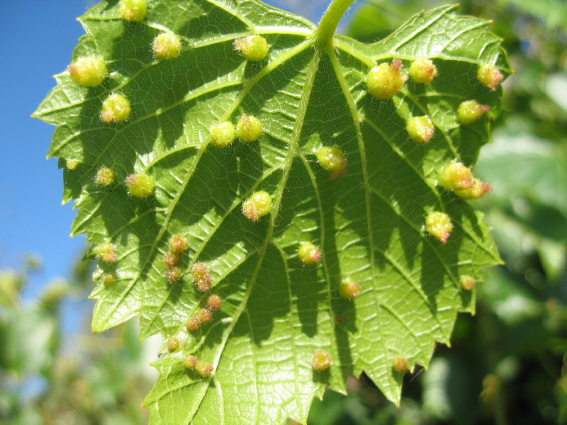 Foglia di Vitis vinifera attaccata dalla famosa fillossera ovvero Viteus vitifolii - Phylloxeridae.