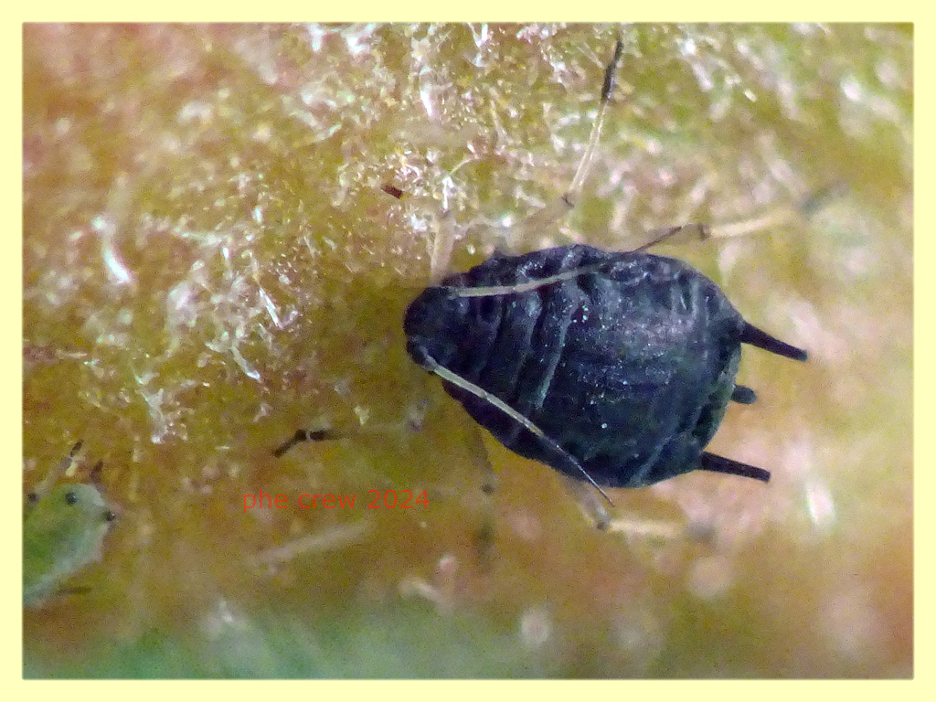 ...dopo 24 ore sono usciti i primi due individui, stavano ciucciando direttamente la galla da dove sono emersi e uno di loro ha addirittura figliato un piccolo afide !