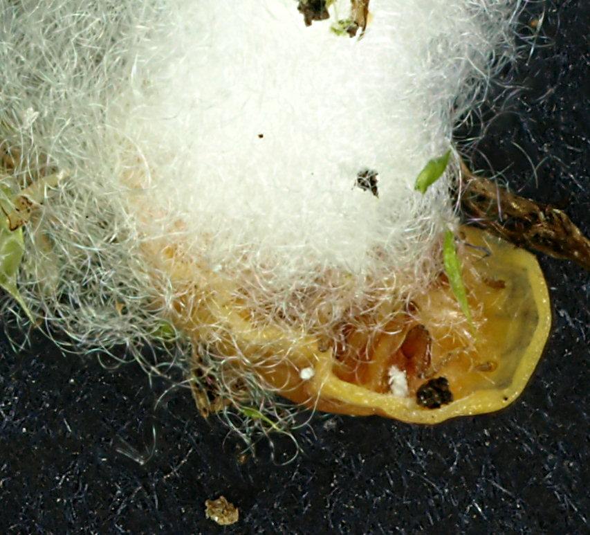Visti al microscopio, ovviamente, si vede che sono pupe, o larve mature. La cosa più strana è che sono dotati di una consistenza assurda per una creaturina di quelle dimensioni (6-7 mm). visto che quando li avevo trovati, scambiandoli per piccoli bulbi o semi, avevo provato a schiacciarli per tastarne la resistenza, ed avevano resistito!
