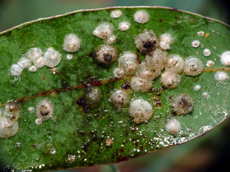 domenica ho trovato questo Psylloidea su eucalipto: penso che sia Glycaspis brimblecombei - "Psilla lerp" (grazie per una conferma). In rete non ho ancora trovato segnalazioni per la Toscana.