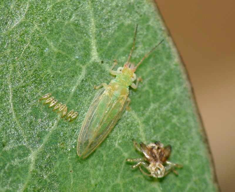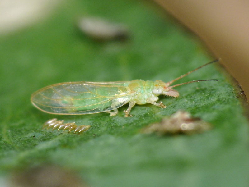 La seconda decade di agosto, durante la vacanza subacquea del sottoscritto, nel campeggio dell'isola sembrava di partecipare a una scena biblica con la manna che cadeva dal cielo (lerps) e lasciava un tappeto bianco sul terreno....................... ma guarda la Glycaspis brimblecombei (identificata grazie al al computer che avevo nella canadese). Forse la prima generazione?