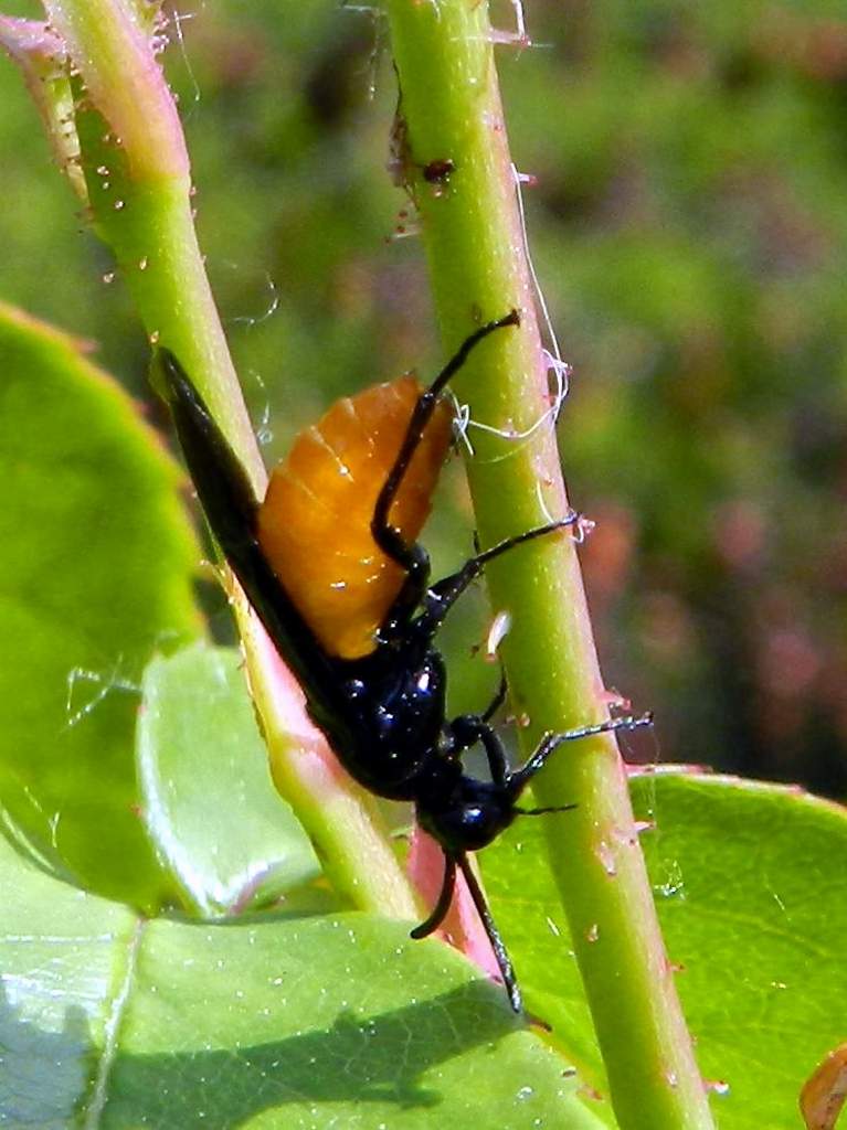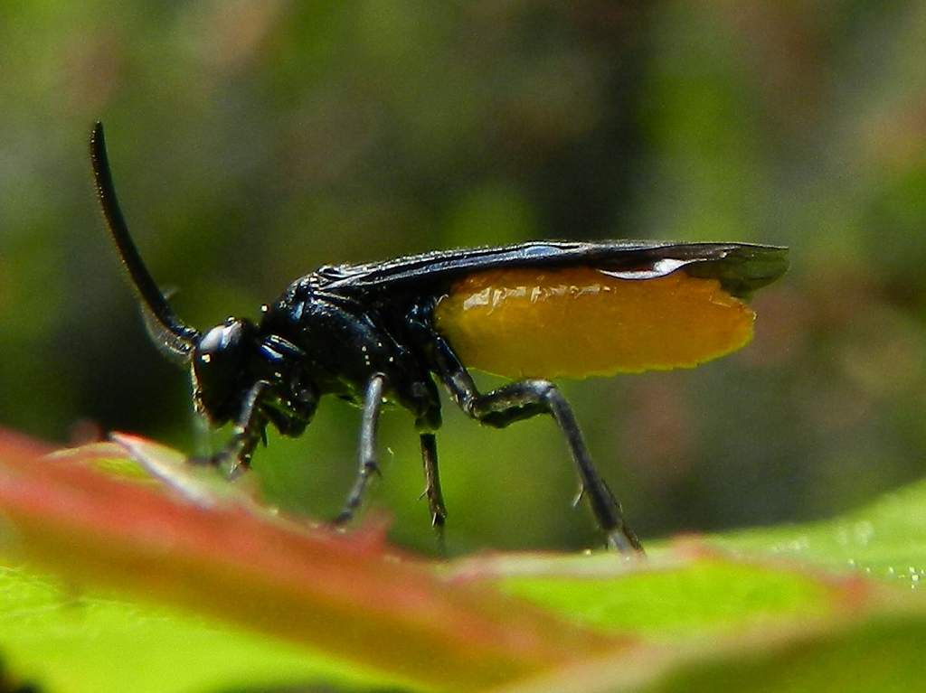 Le rose del mio giardino sono infestate da questi piccoli imenotteri (mm. 10) della famiglia Argidae e che ritengo appartenere alla specie Arge pagana (Panzer, 1798).