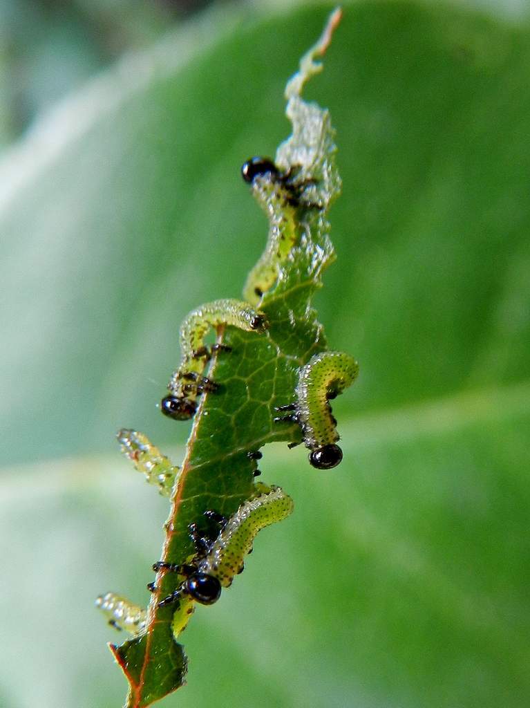 Di seguito alcune immagini delle larve e degli adulti mentre compiono i loro misfatti a danno delle mie piante.