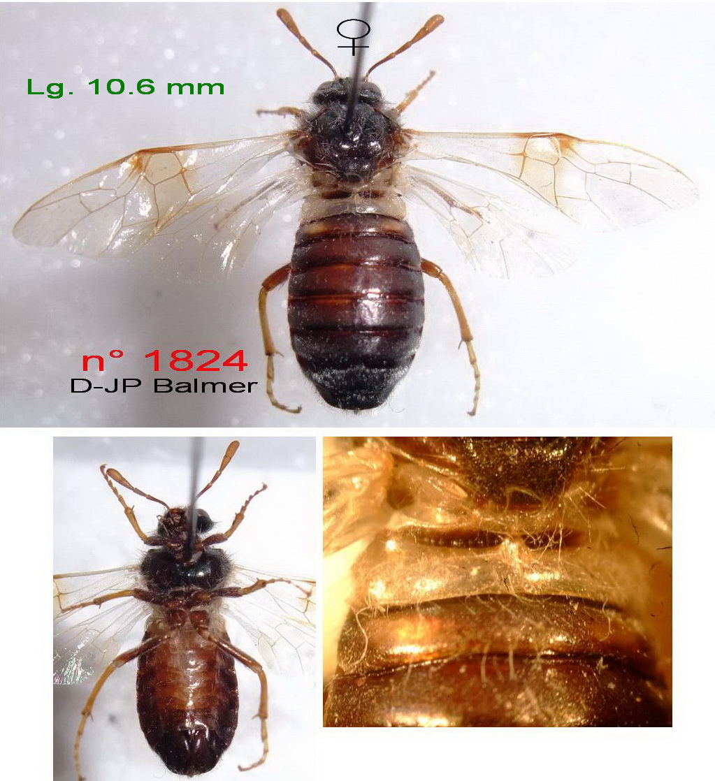 Comment on the joined photos : The 3 1st antennal segments are red stained with black, but this sees itself very bad on our photos (I did not manage to do better)