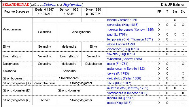 SELANDRIINAE to : Lines 2 to 7 of the keys