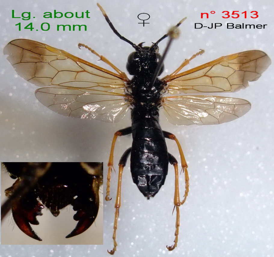 One sees on the photo of the ♀, the asymmetry of the mandibles (accentuated by natural wear), important character for generic classification. .