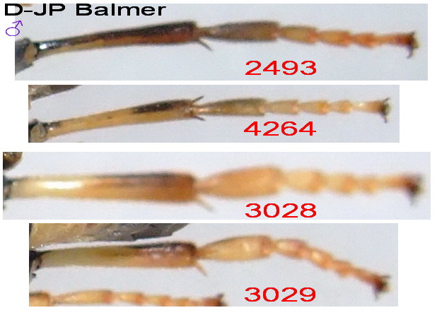 - diana ♂ : Tibiae not infuscate apically (our capture has the tibiae infuscate) - semseyi ♂ : Thorax entirely black except for narrow outer edge of tegula (our capture has scutellum, tegula and hind edge of pronotum marked with yellow) Thus we captured : maculata. According Lacourt p.263 , the var. of maculata are : - atricollaris Enslin 1912 , According Enslin p.46 : " ... Pronotum, tegulae,und Metapleuren schwarz" " ... Trochanteren oft gelb gezeichnet" - c ollaris Zirngiebl 1940 According Blank p.215 : "... was described due to the almost black pronotum and the yellow tegulae" - wagneri Zirngiebl 1940 According Blank p.216 : " ... was described due to the yellow pronotum and the almost black scutellum" --- maculata maculata ♂ has amongst other things : In all the literature that I could consult and on all (rare !) photos which I could see on the Net : - None (...) ♂ has a marginal hindwings with vein. According Enslin p.45-45 - Coxae 3 (in particular) with yellow. - Metapleuron (thing understoud) not black. According Benson fig. 29 p.191 (there is an unfortunate inversion in the key p.174) : - The two 1st tarsomere of tarsus 3 are not swollen. --- It is thus seen that our Symphyta does not have these characters. I consider that these differences, with maculata maculata and its indexed varieties, justified a placement in subspecies rather than in new variety. I named this sub-species " danieleae" in homage to my wife danièle, who worked (and still works) long hours to prepare our captures. --- Below the photos of the distinctive characters between maculata maculata ♂ (# 2493-4264) and maculata ssp. n. ♂ (#3028-3029) # 2493 captured at an altitude of about 895 m in Cne : Le-Petit-Abergement (Dépt. Ain - France) - 11.06.1992 # 4264 captured at an altitude of about 720 m in Cne : Longeville (Dépt. Doubs - France) - 27.04.2007 # 3028 & 3029 captured, at the same time, at an altitude of about 740 m in Cne : Songieu (Dépt. Ain - France) - 14.06.1995 Saluti. D & JP Balmer