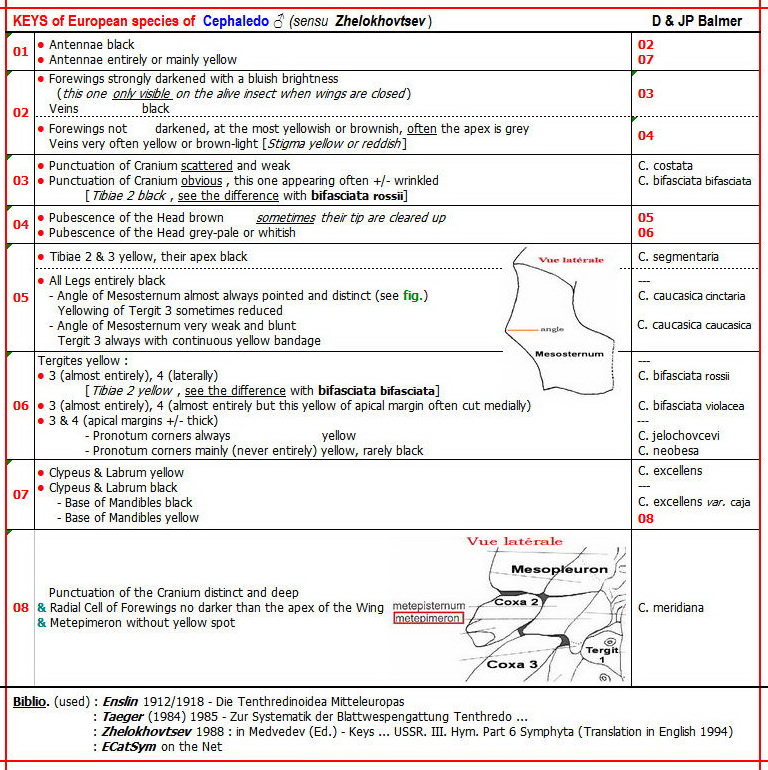 KEYS of European species of Cephaledo Male (sensu Zhelokhovtsev) - Symphyta Tenthredinoidea Tenthredinidae Tenthredininae (revised Version)