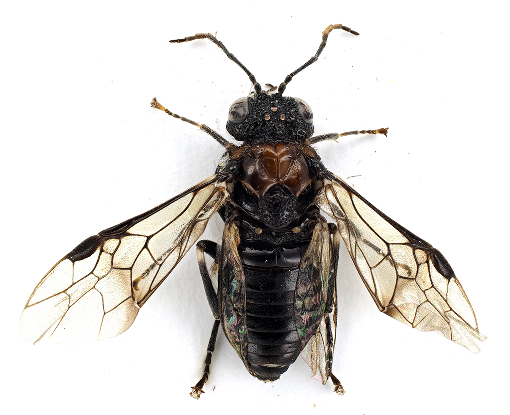 condizione essenziale per lo studio della maggioranza dei sinfiti è la visibilità dell'intera venatura alare, ad es. nei tentredinidi blennocampini la prima cosa da fare per arrivare al genere è vedere se nell'ala posteriore le cellule mediane chiuse sono due, una o nessune :mrgreen: sfortunatamente le ali dei sinfiti, soprattutto quelli medio-piccoli, sono in generale molto meno consistenti di quelle degli aculeati di pari dimensioni :sick: e negli exx morti tendono ad afflosciarsi come straccetti bagnati :cry: e anche l'addome negli exx secchi è spesso collassato e raggrinzito tipo prugna secca :x