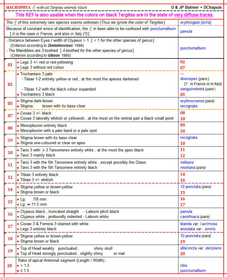KEY of Macrophya ♂ with all Tergites entirely black (of France & Italy) , Essay of determination of species
