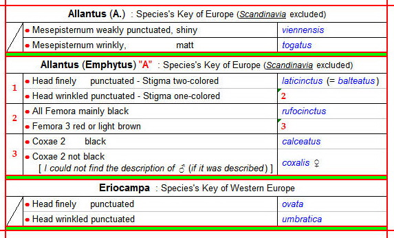 | Oggetto del messaggio: | Re: Keys of Allantus (A.), A. (Emphytus) "A" & Eriocampa - Symphyta Tenthredinidae Allantinae |