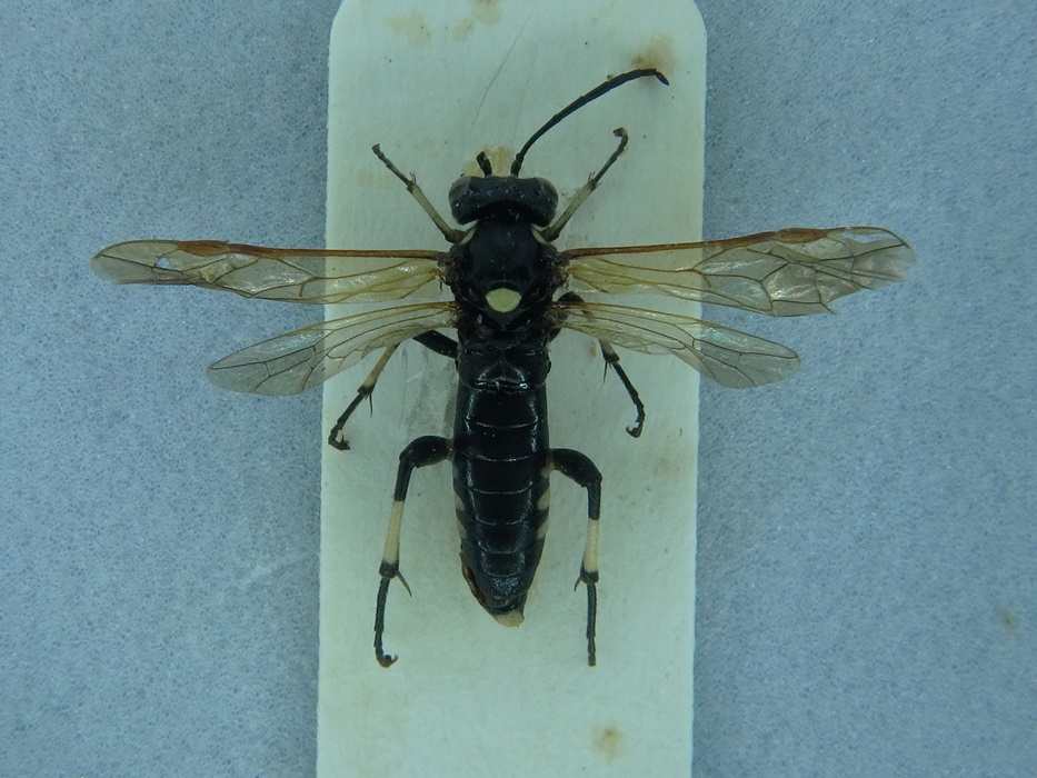 anche se la preparazione delle ali lascia più che a desiderare (nei Tenthredinidae è spesso necessario poter osservare la venulazione alare in tutti i dettagli), questa è sicuramente riconoscibile come Macrophya duodecimpunctata :ok: tra le Macrophya bianche e nere (cioè senza parti rossicce) è l'unica ad avere lo pterostigma giallognolo anziché nerastro