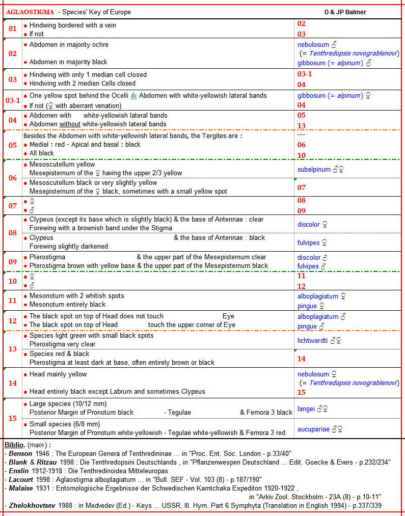 - Benson 1946 : The European Genera of Tenthredininae ... in "Proc. Ent. Soc. London - p.33/40"